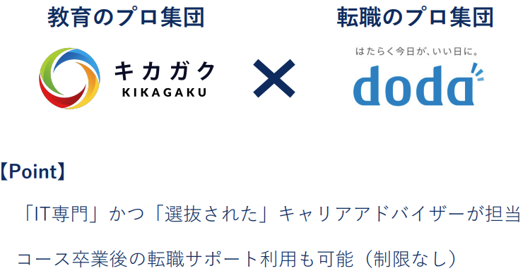 キカガクは求人サービス大手のdodaと連携しており、転職希望者にはAI分野特化の求人情報を提供しています。