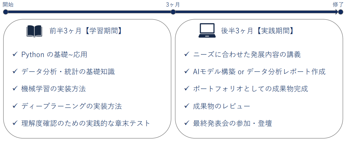 キカガクの長期コースはそんな悩みを解消し、初心者でも本格的なスキルを身につけられる最高の学習環境です。
