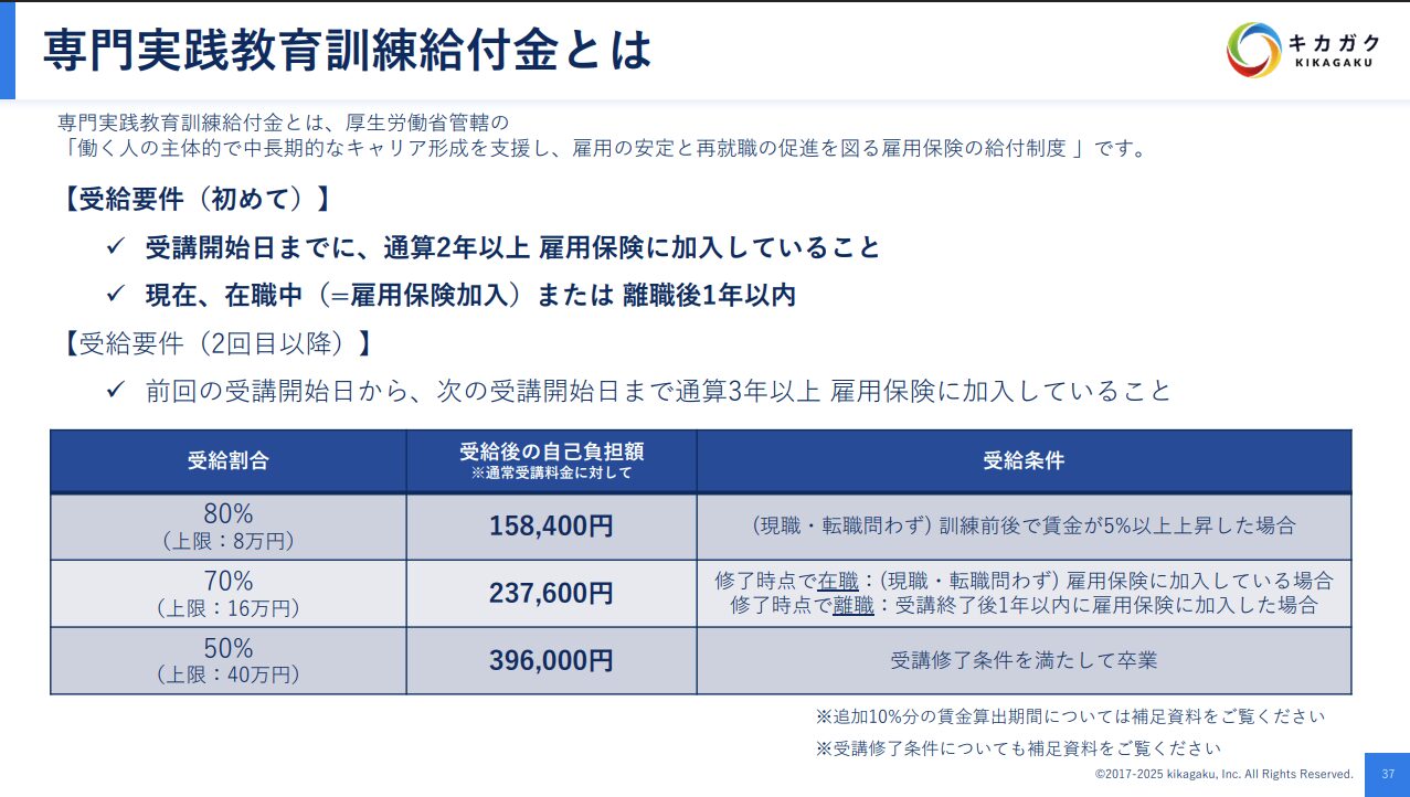 キカガクの生成AIビジネス実践コースは、厚生労働省の「専門実践教育訓練制度」の対象講座!