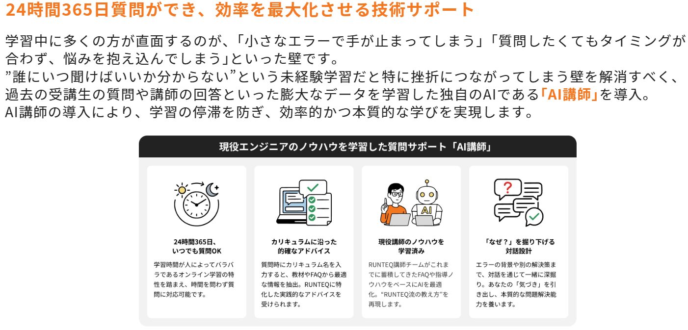 RUNTEQ(ランテック)では、この課題を徹底的に解消するために、以下のような独自の仕組みを導入しています。