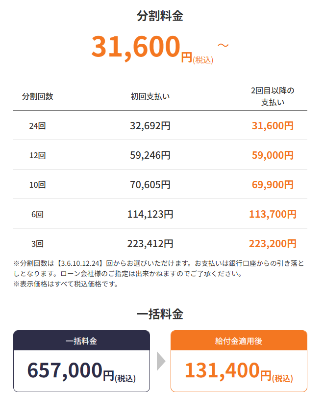 675,000円(税込み) → 給付金利用で131,400円(税込)