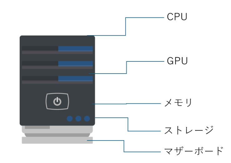 サーバーもパソコンと同じように、いくつかの主要な部品から成り立っています。