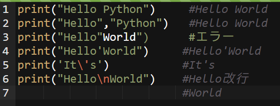 おためしでプログラミングを実行する時、今は使わないコードをコメントアウトしておくと一々消さなくても良いので便利です。