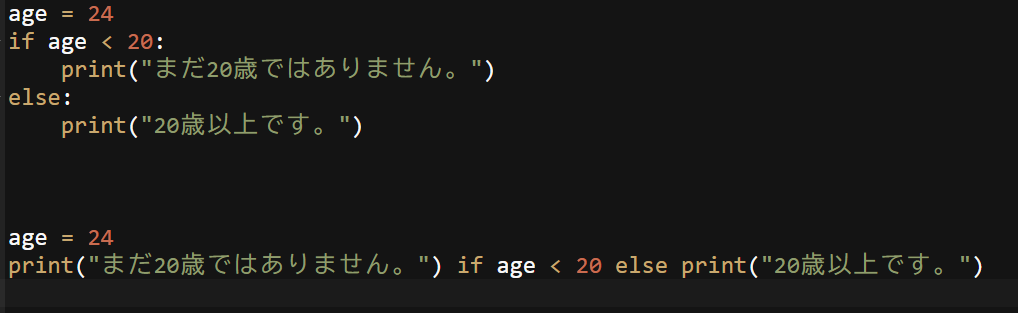 if ~ else を1行で書ける便利な書き方があり、これを 三項演算子(条件演算子) と呼びます。