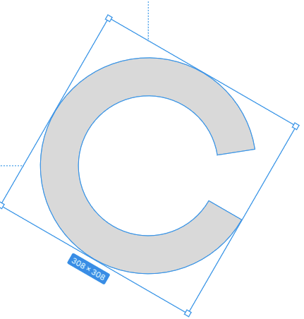 角度の調整は青い線の四角(バウンディングボックス)の外側をクリックすると黒い矢印のようなマークが表示されるので、マウスでクリックしドラッグにて調整を行います。