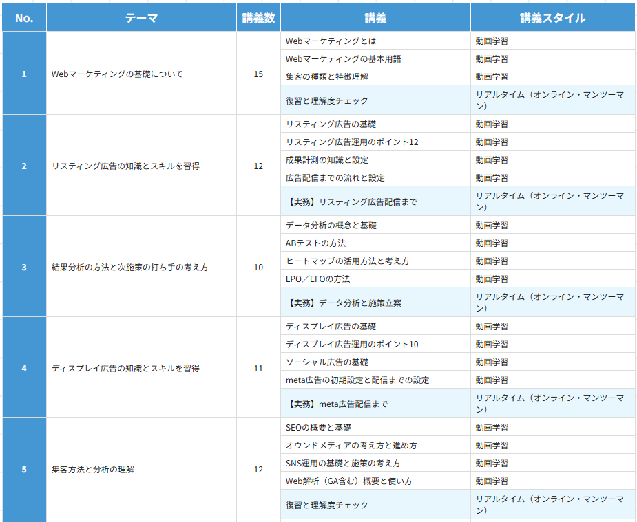 - 講師が現役マーケター:最新の事例をそのまま学べる