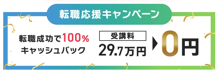 - 転職応援キャンペーン:転職が決まれば受講料が「実質0円」