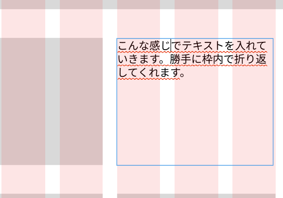 メニューバーの「T」をクリックし、テキストを入れたいところの上端をクリックしたままドラッグしてテキストボックスを作る。