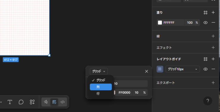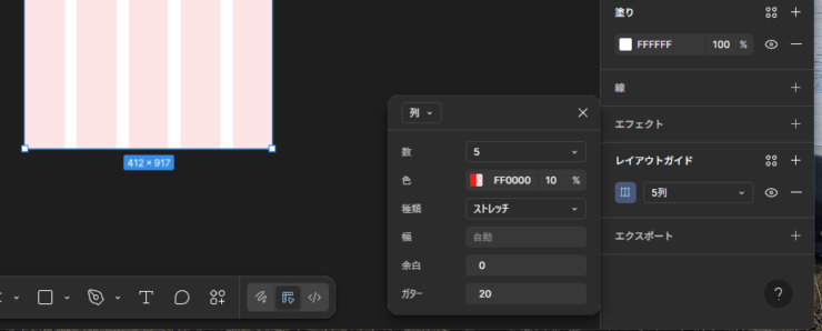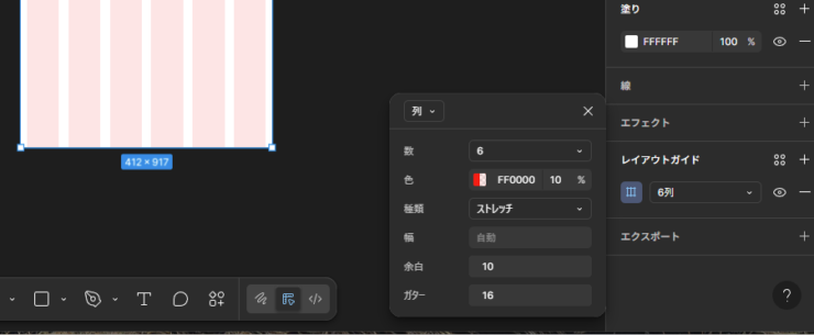 フレームを選択した状態で、右側のパネルから「Layout Grid(レイアウトグリッド)」を設定します。
