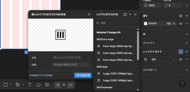 「新しいレイアウトガイドスタイルを作成」の名前(好きな名前でOK)を設定して「スタイルの作成」をクリックすると登録されます。