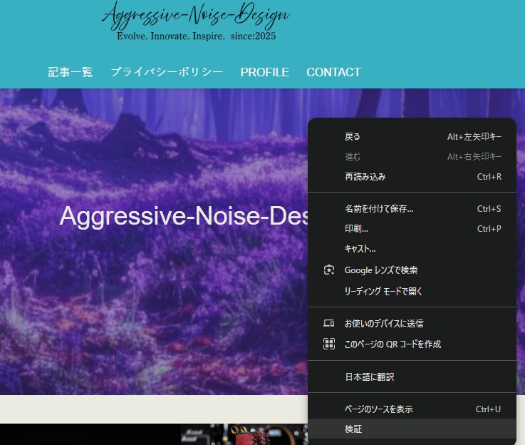 • 画面上で右クリック → 「検証(Inspect)」をクリック。