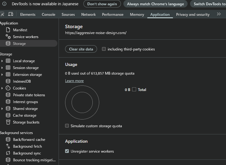 ブラウザに保存されるCookie・LocalStorage・IndexedDBなどを確認・削除できます。