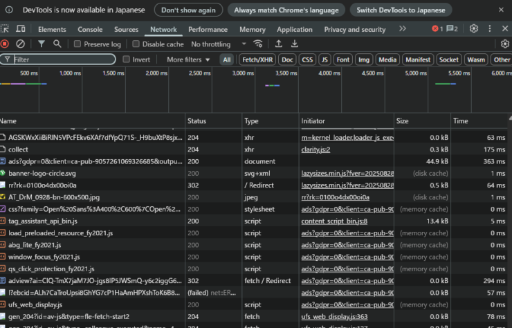 CSSやJSが正しく読み込まれていない、API通信が遅い――そんなときに役立ちます。